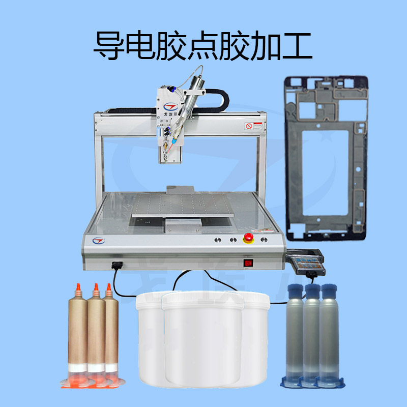 導電膠點膠加工是經過自動點膠機直接將導電膠水經過氣壓涂在需要做電磁屏蔽的產品上面。